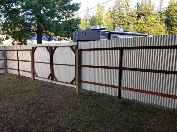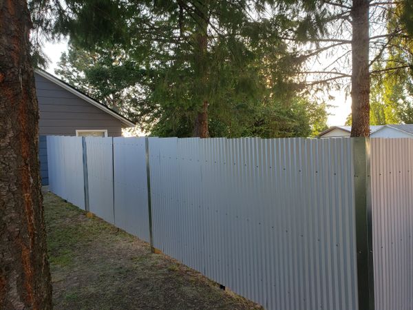 Corrugated Metal fences are a great way to make true privacy fence and, in a cost-effective way. Whether you need some privacy from your neighbor or you just like the metal look. This style is the way to go. Thanks for looking and we hope you have a great day.