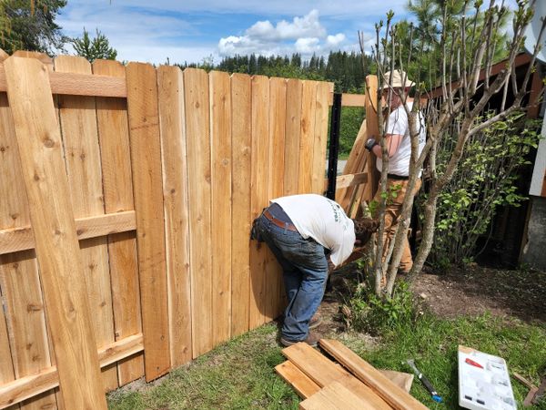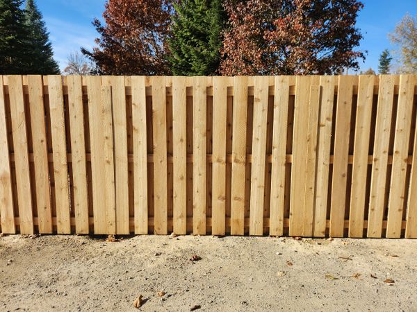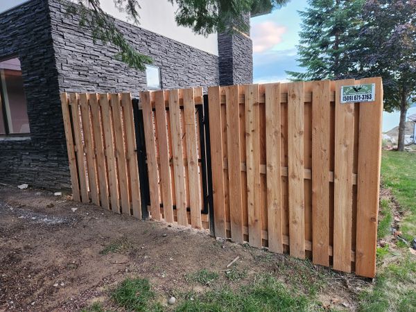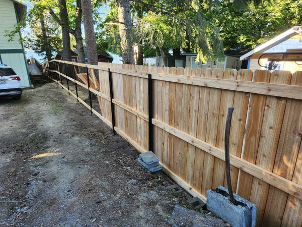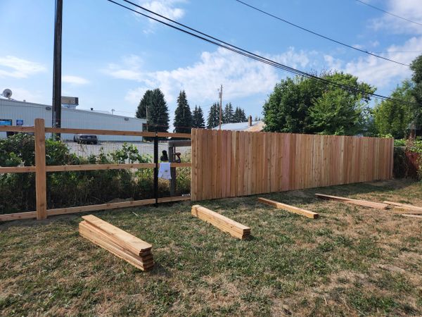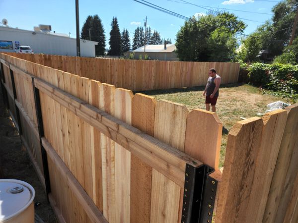 At Pack Pride we only use Cedar when creating a wood fence. The best quality wood to make the best quality fence. Even though the fence is wood, you might notice the post are not. Another thing we like to do is always use a steel post, when creating a wood fence. Steel post are never going to rot or warp. Helping the lifetime of your fence last much longer.
